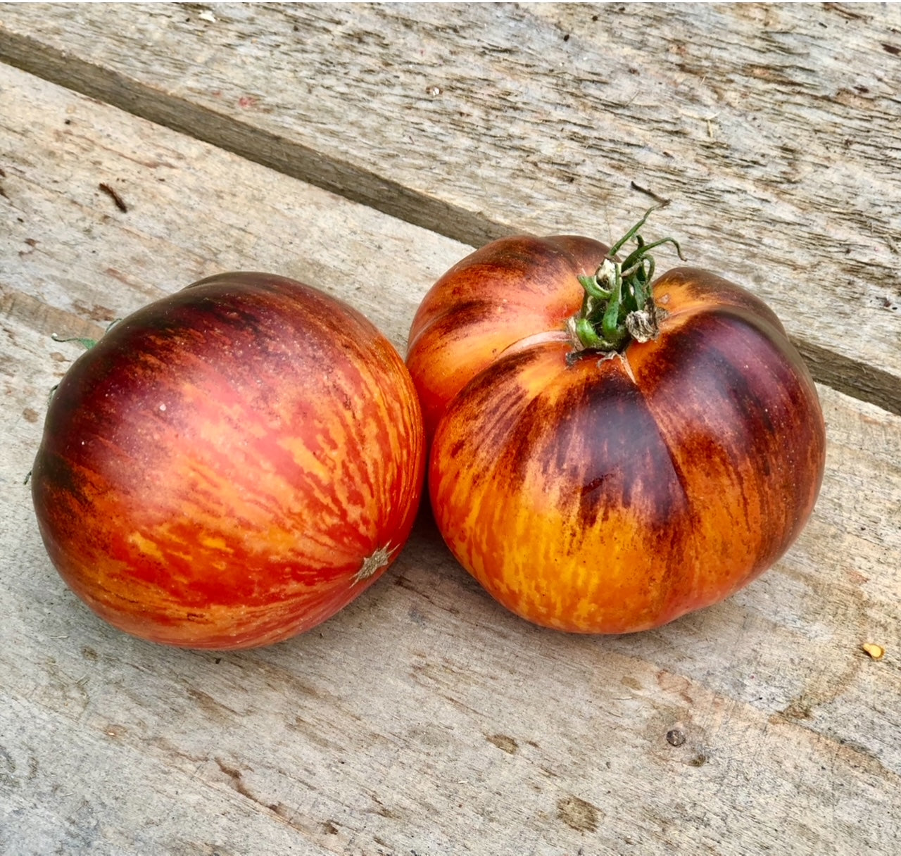 Beautiful beefteak tomato . Orange with black antho shoulders.