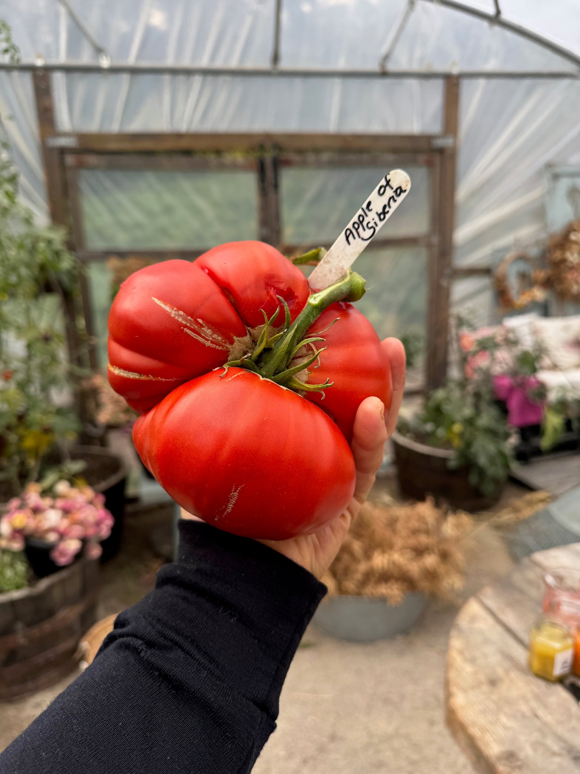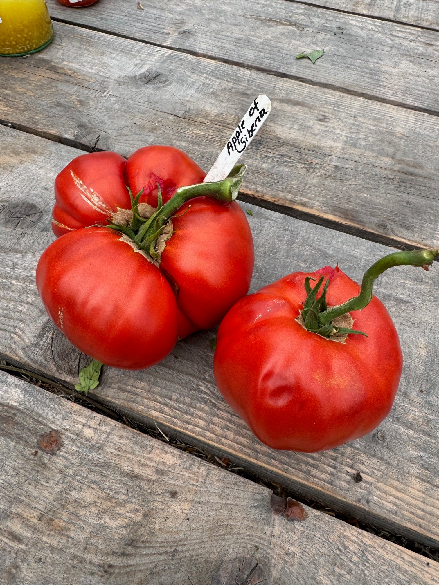 Known for their round, big fruits, they have a slightly ribbed shape and a vibrant red color. The flavor is mild, juicy, and slightly tangy, making them versatile for both fresh eating and cooking. This variety is known for being able to withstand frost and short growing seasons, which makes it a popular choice for cooler regions. They're also resistant to some common tomato diseases.