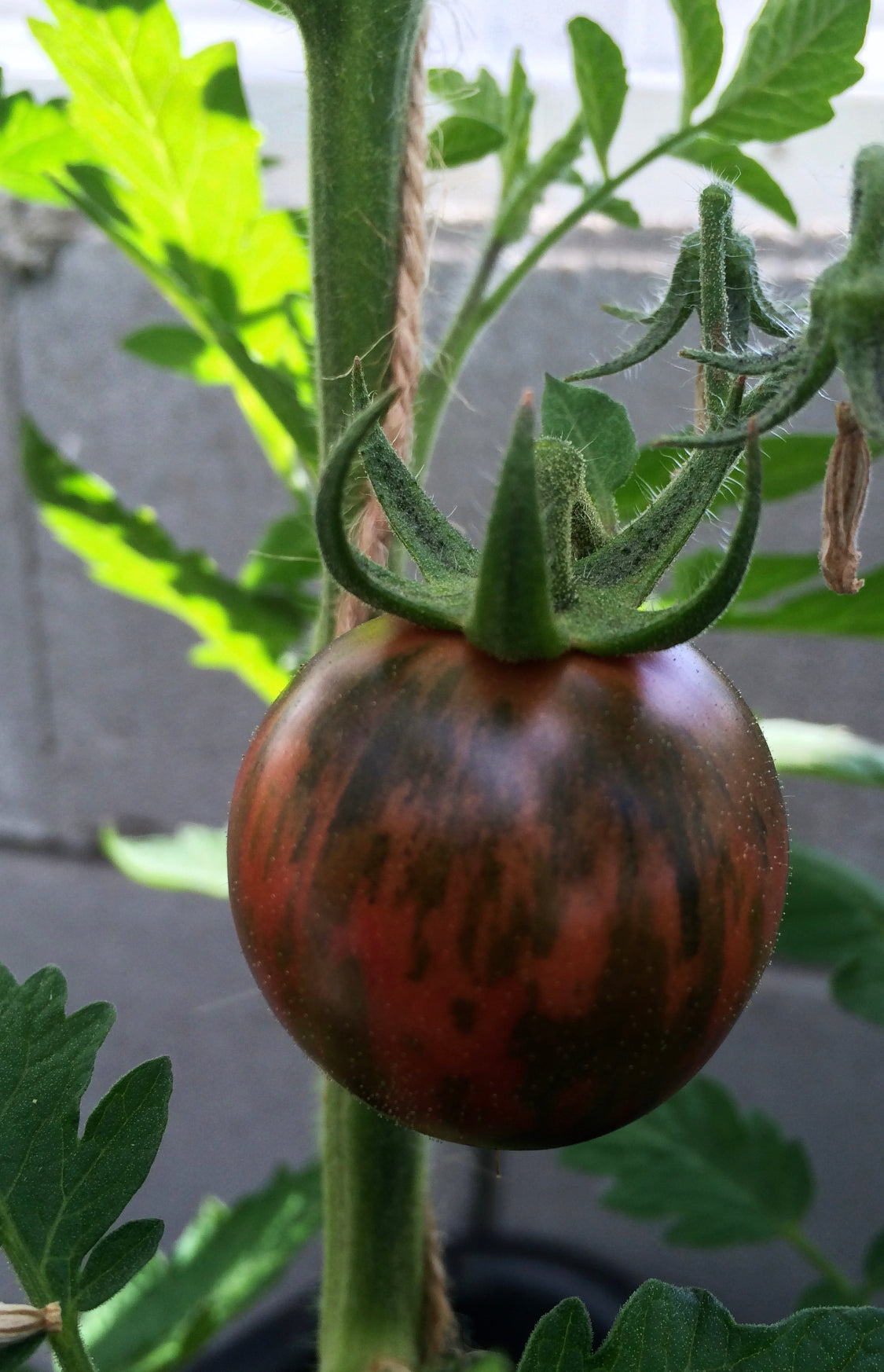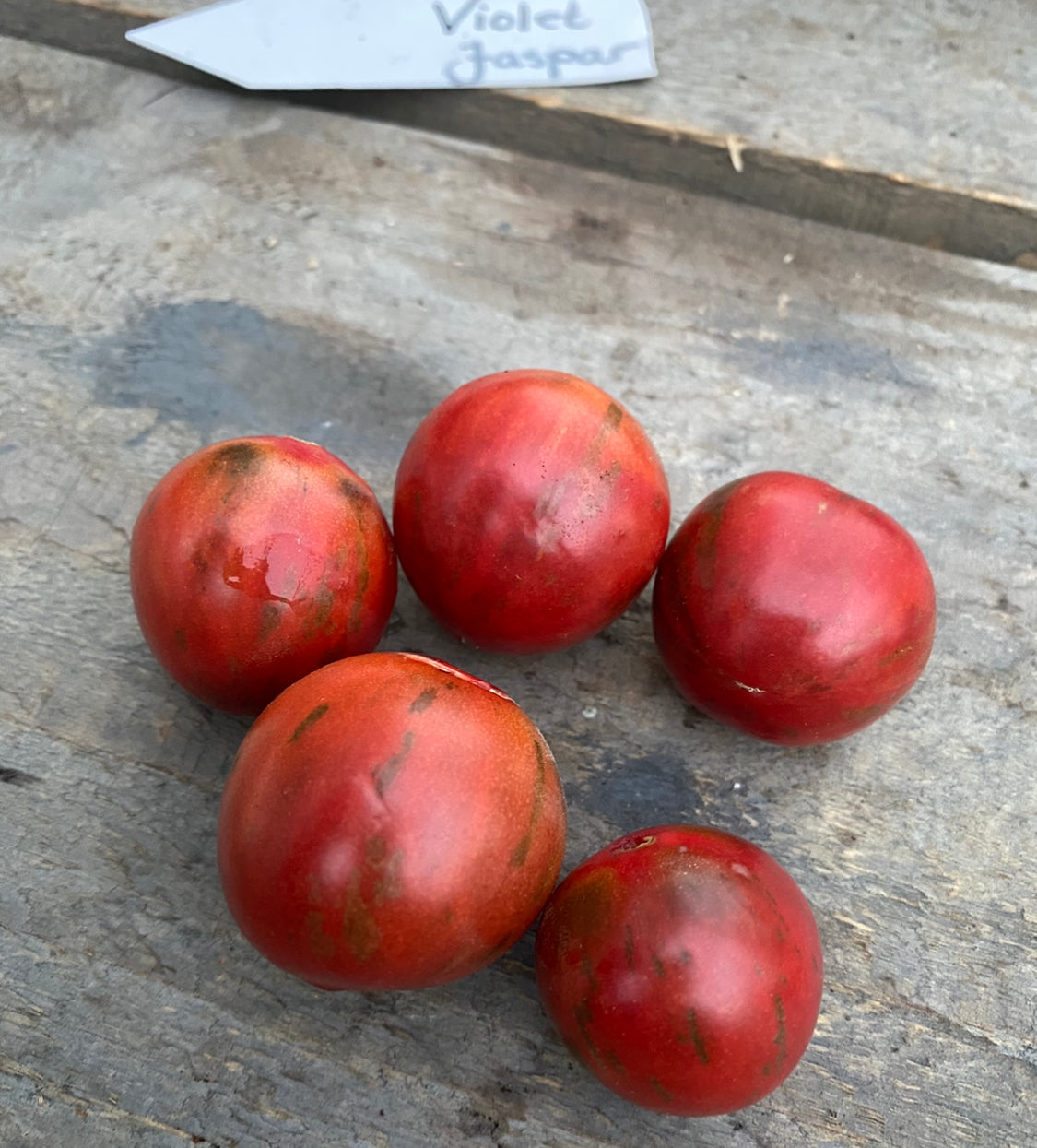 I tasted this tomato for the very first time in 2013 in Camilla Plum’s greenhouse in Denmark. . Overwhelmed, I brought home some seeds, and I’ve had it with me ever since. Incredibly beautiful large brown/red, cherry tomato with dark green stripes. Originally a cultivar from China. Cordon . Greenhouse.