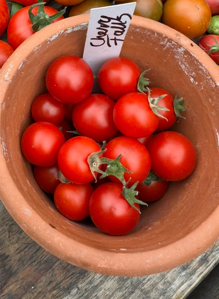 Cherry falls is a Cascading determinate tomato plant . It produces an abundance of sweet red cherry tomatoes.