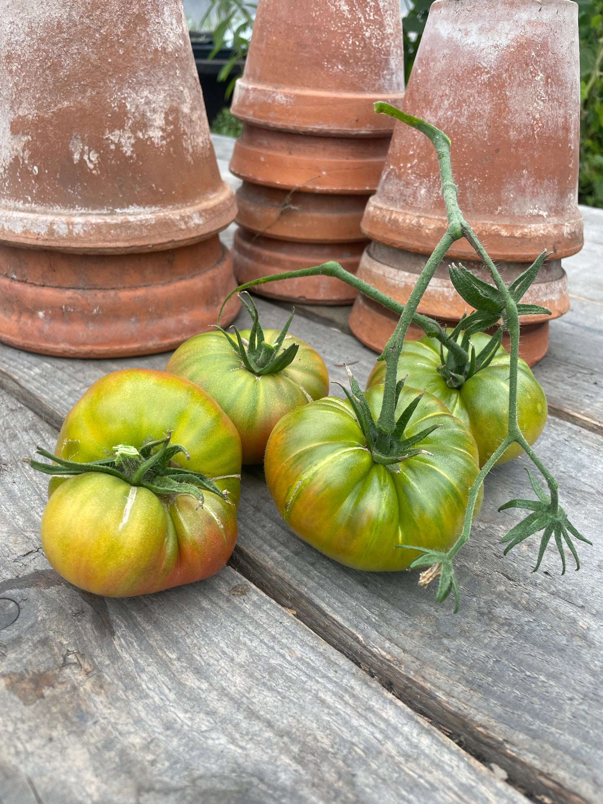 THIS tomato is legendary! Definately one of the best tomatoes I have ever tasted! An all time big juicy beefsteak variety. Green when ripe with a blush of pink at the bottom. Intense sweet and delicious. A must have! Quite late season, but worth waiting for!