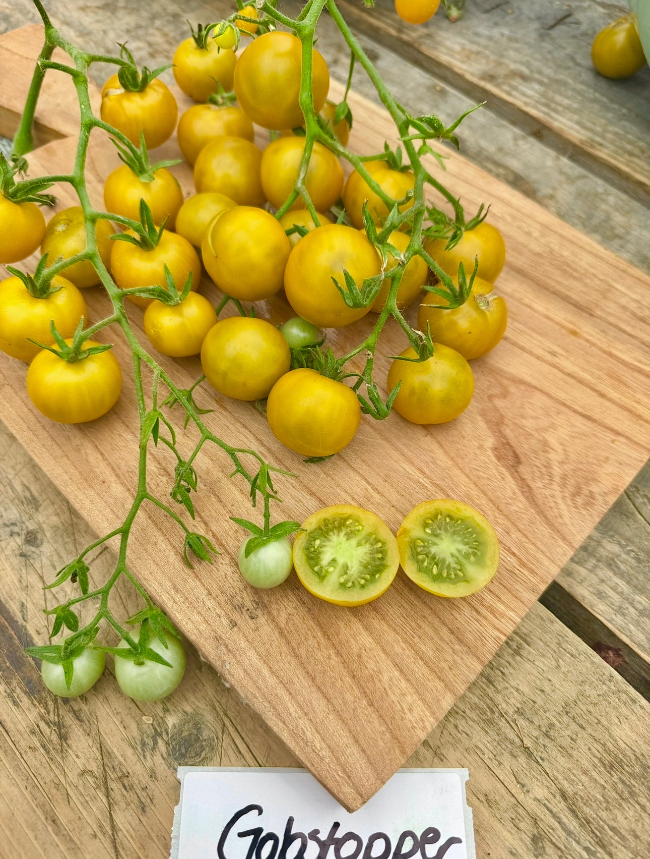 Early indeterminate yellow cherry variety (about 70 days), Yellow/greenish