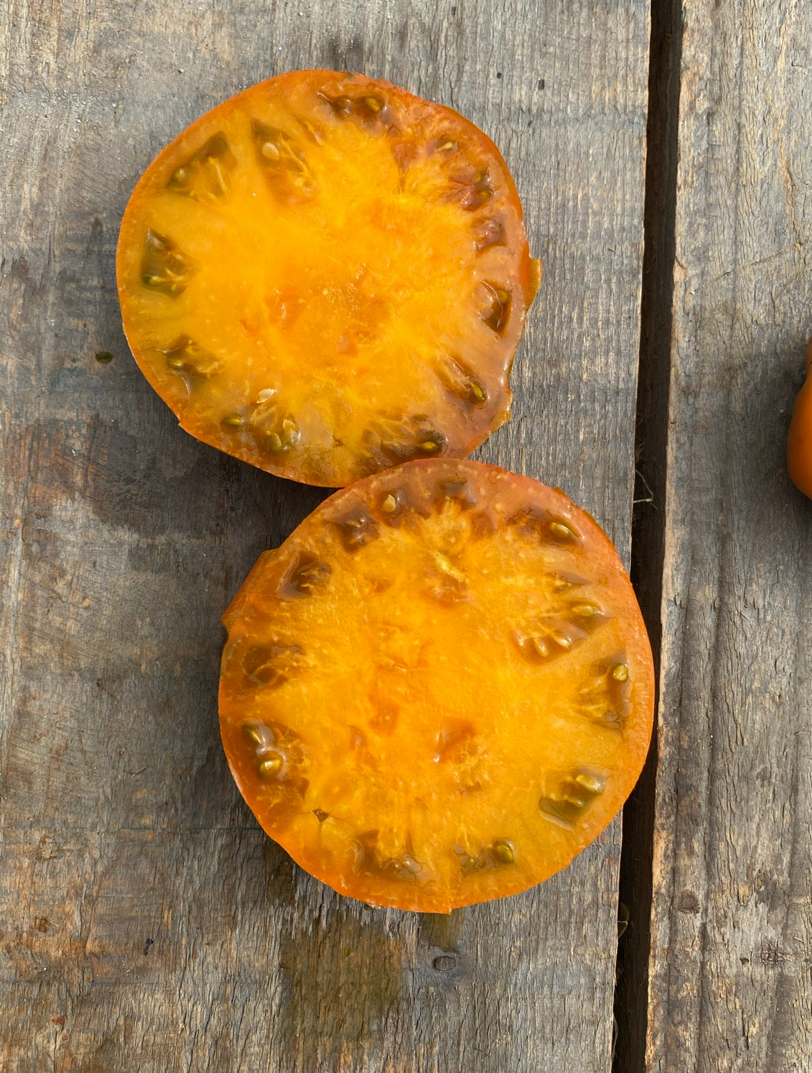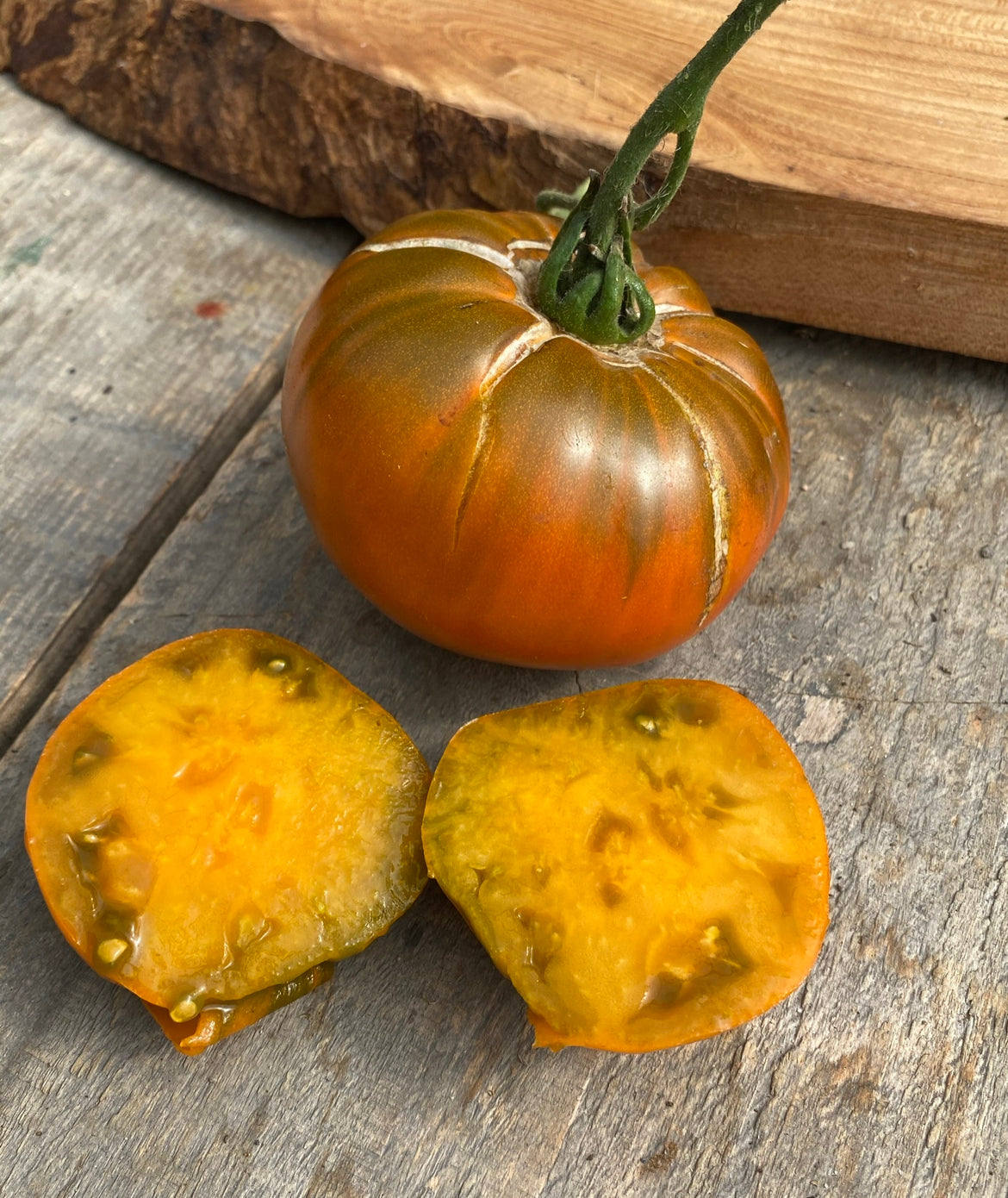 A truly beautiful tomato variety! The fruits have a Bronze/copper skin. The flesh inside is stunning bronze and greenish. Lovely sweet tomato flavour with a earthy undertone. First introduced in 1893 by James Thornburn of New York. Prolific variety. Tall cordon.