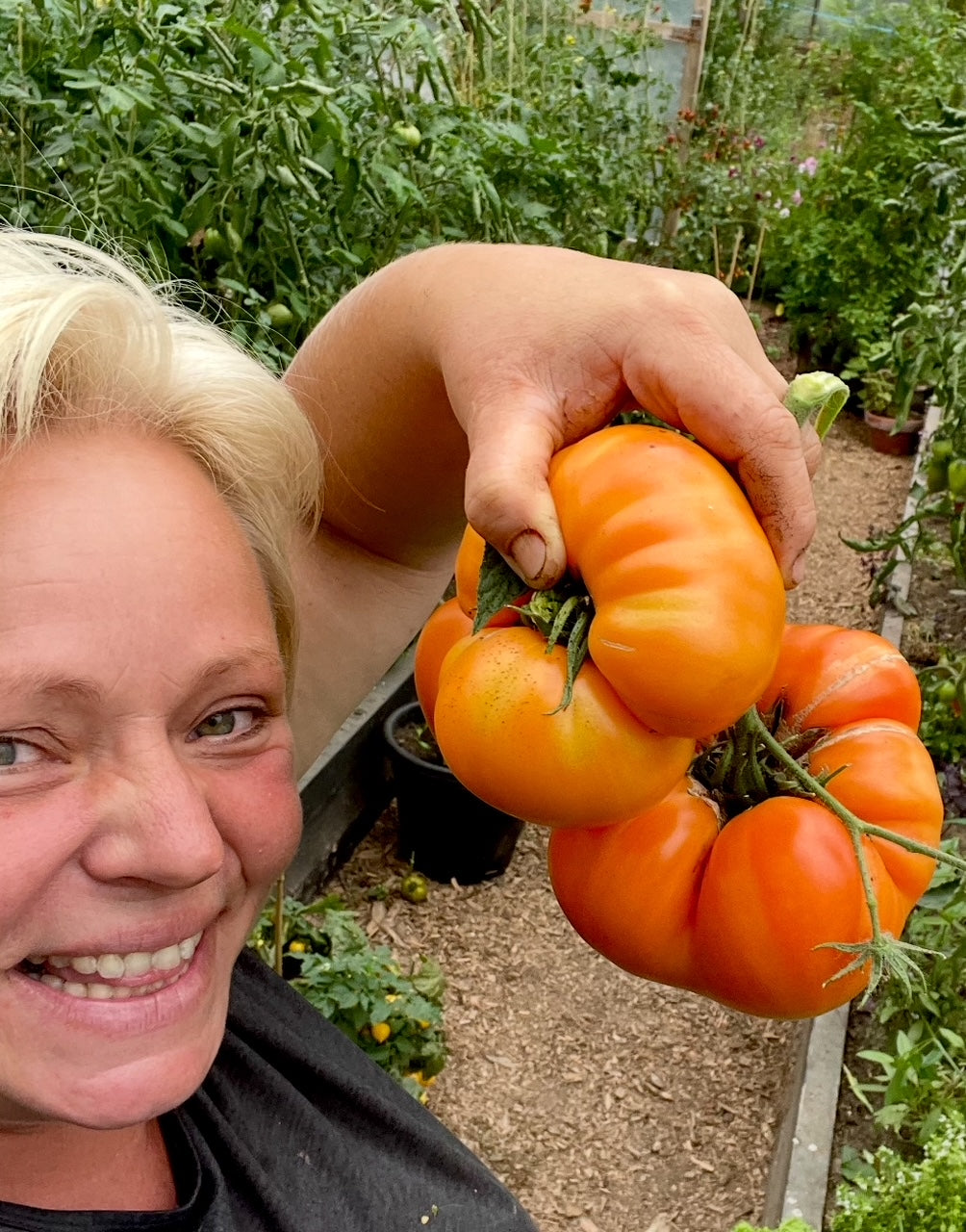 Beautiful big Orange beefsteak tomato, weighing up to 800 grams.