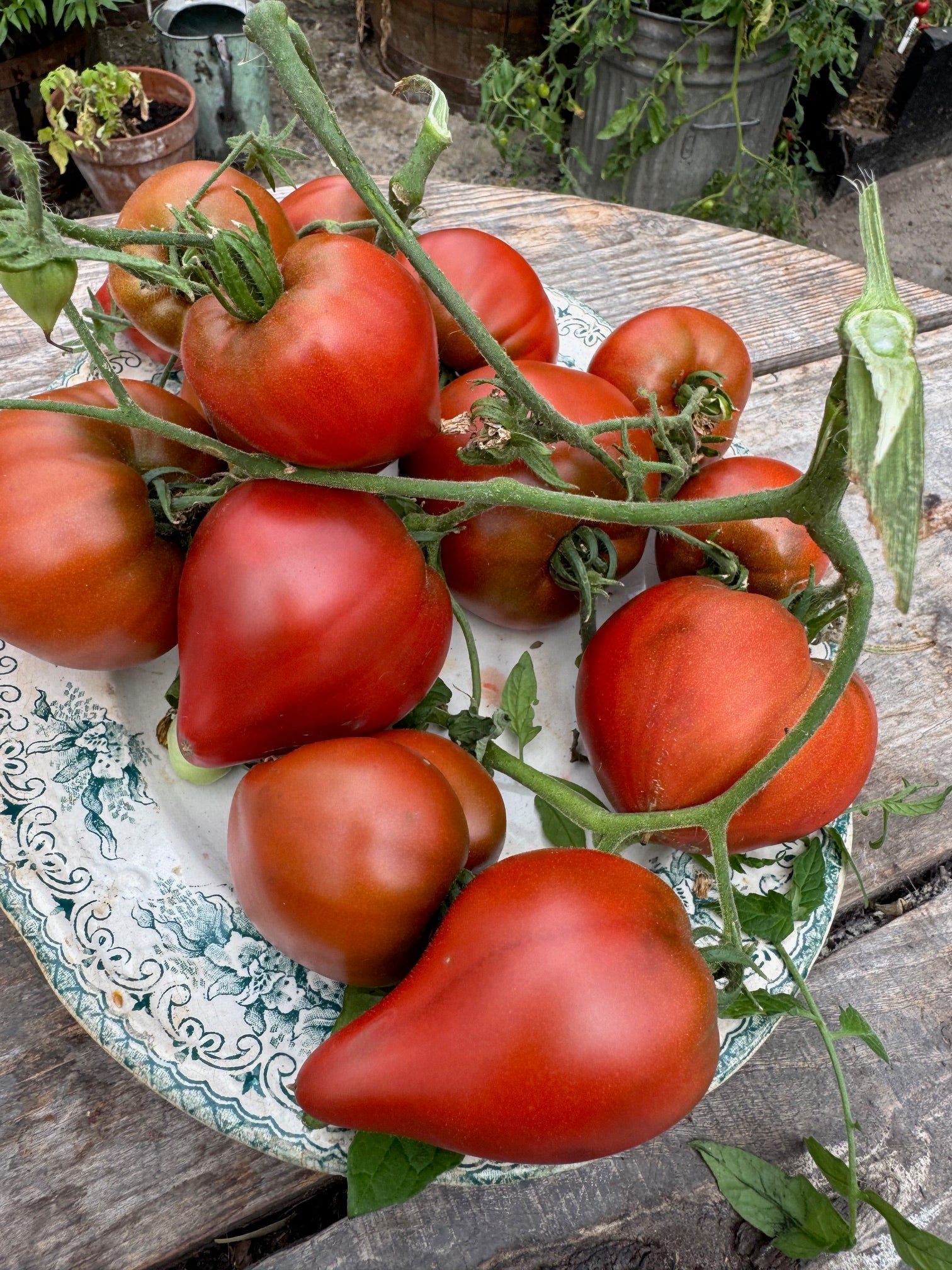 Fruits have brownish-red skin, firm flesh, very few seeds and a rich, old-tomato flavour.