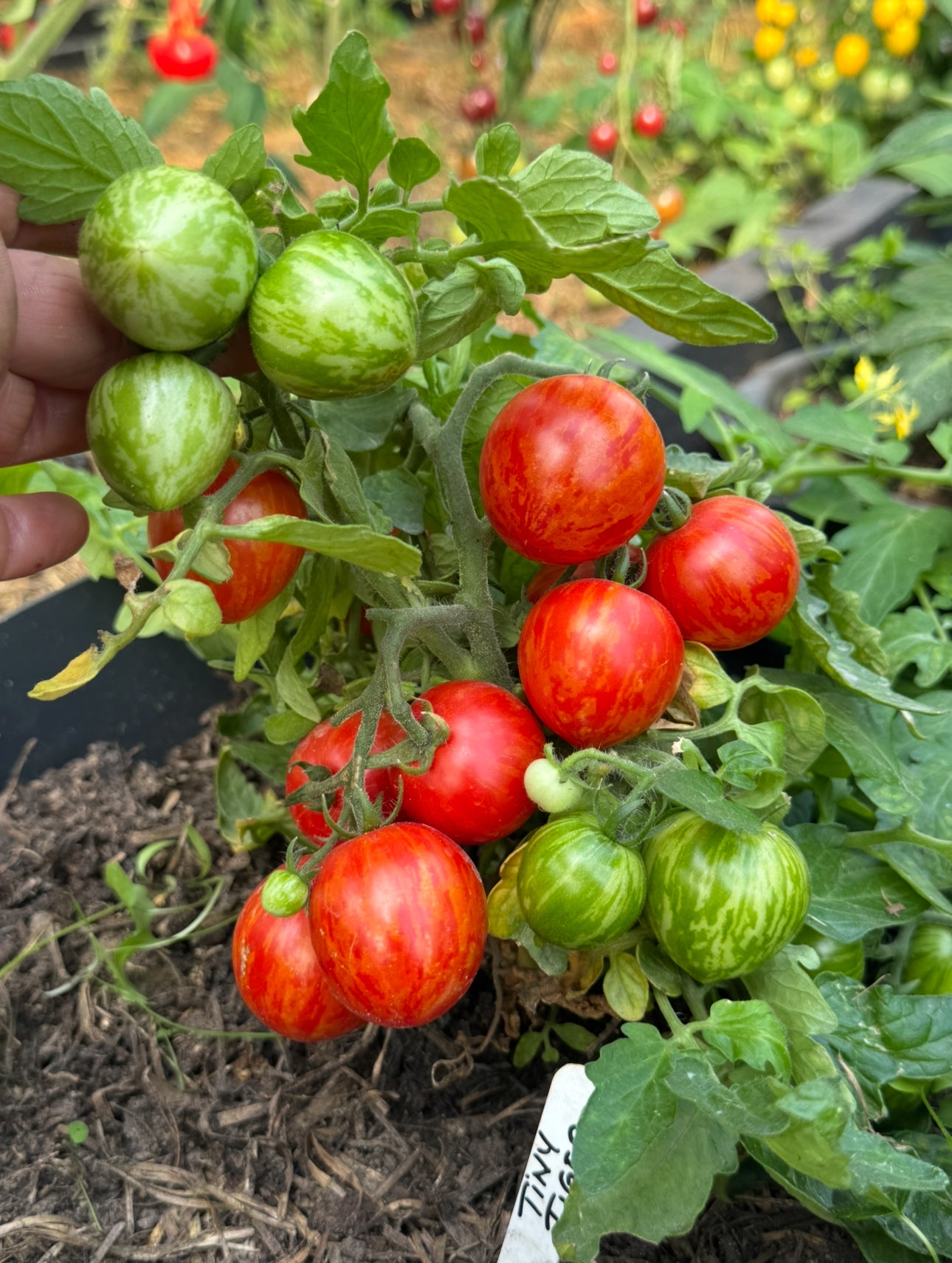 The tomatoes are small, round cherry-type tomatoes, They ripen to a striking golden-yellow or orange-yellow base colour with red stripes.The flesh inside is typically red or bi-coloured.