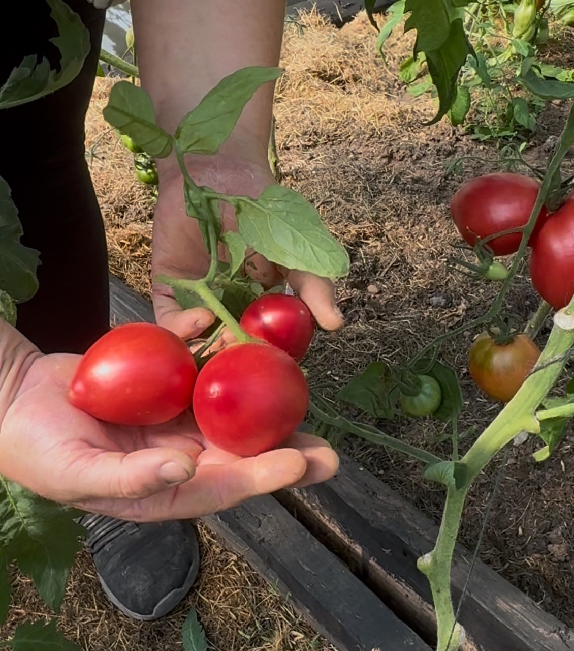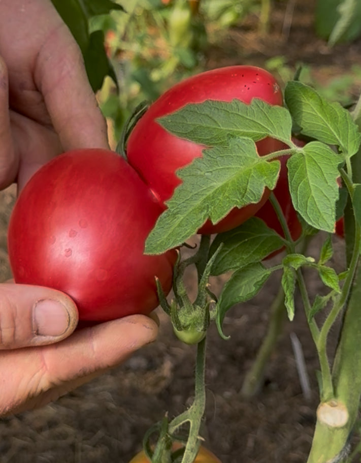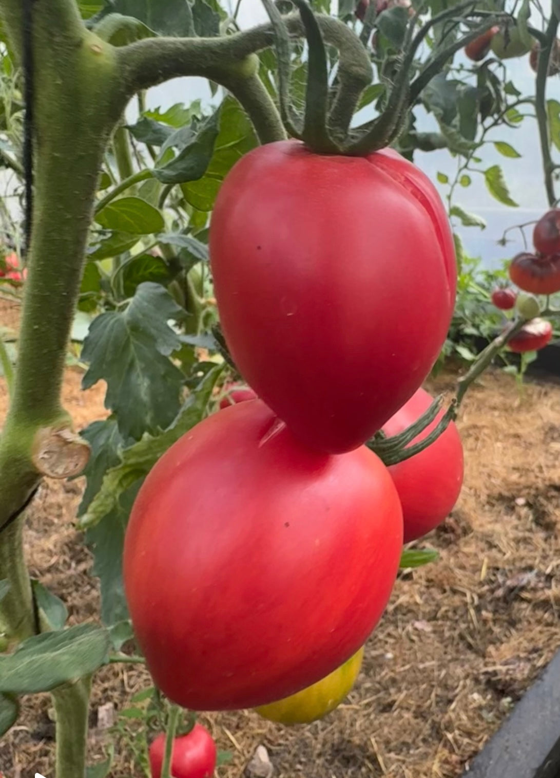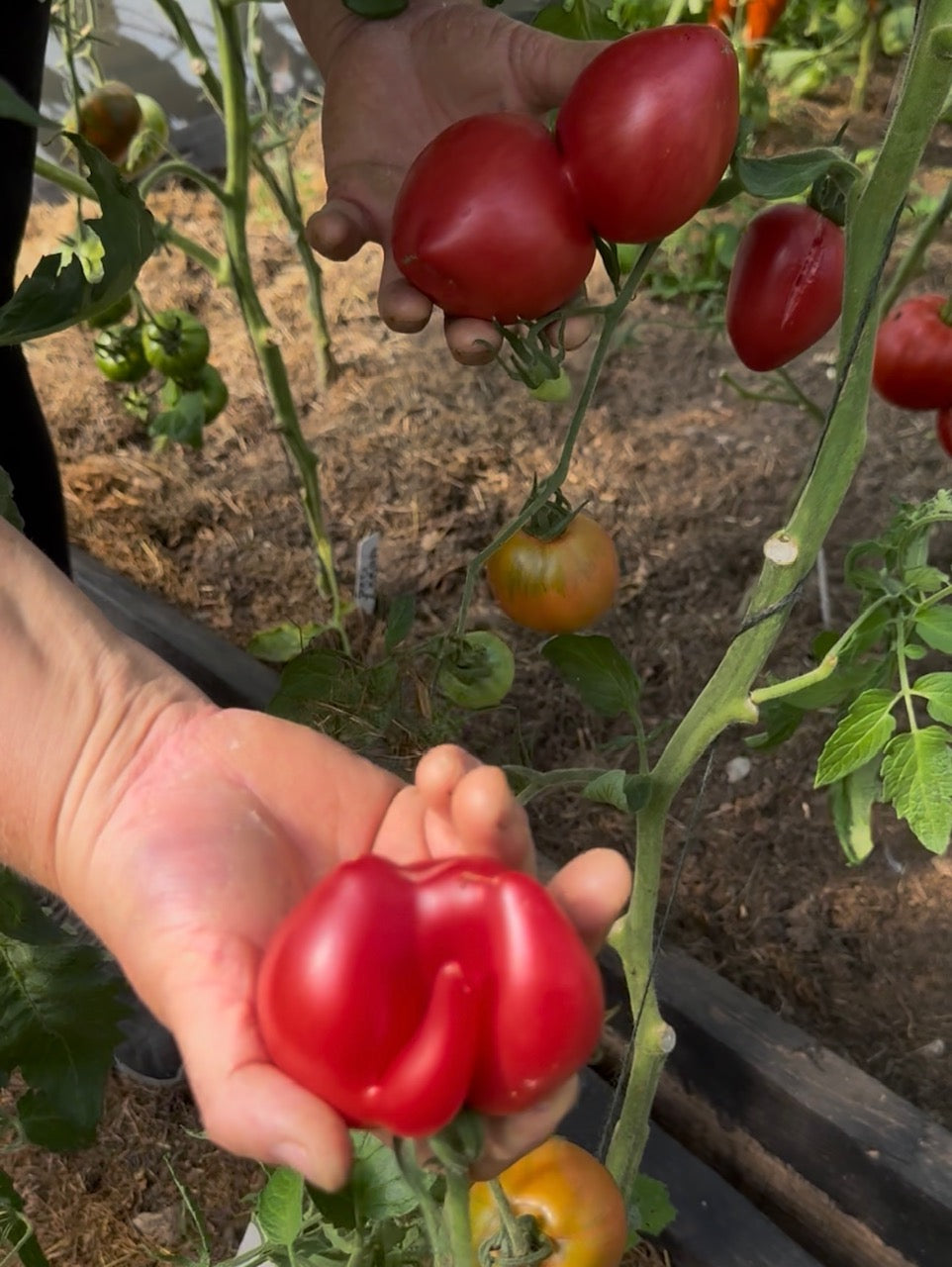 I have to admit that I grew this variety purely because of the funny name.. But it did not disappoint. Lovely beefsteak variety with pinky red fuits and firms flesh. Heart shaped with juicy sweet flavour.