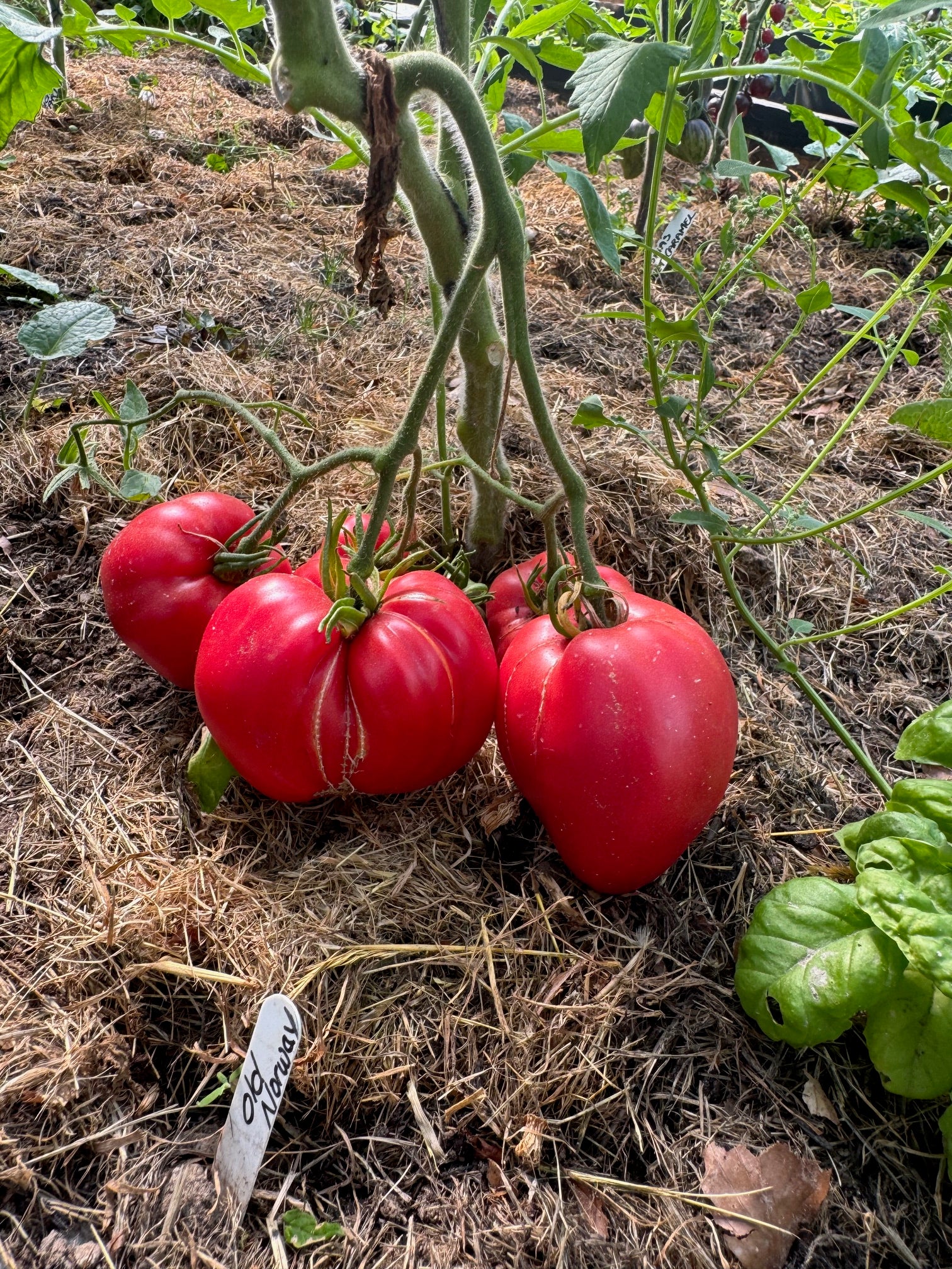 Beautiful heart-shaped raspberry red beefsteak variety. Fruits weighing 250-600