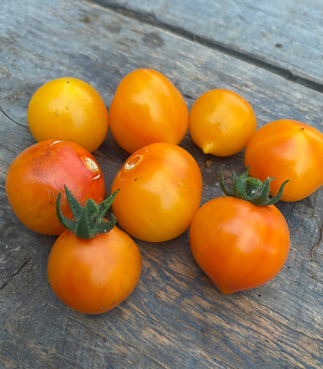 Beautiful orange cherrytomatoes. Sometimes with a strike of red.