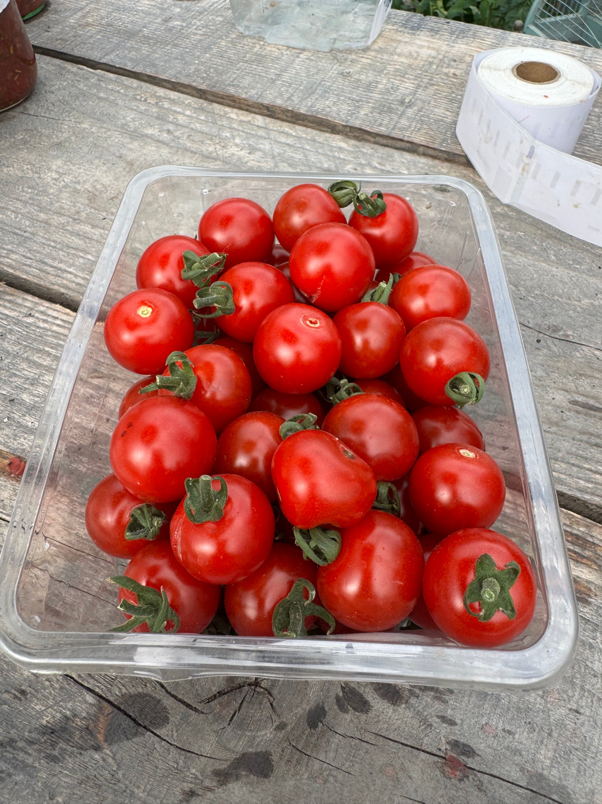 Tiny “micro-mini” red cherry tomatoes (pea-sized) on long trusses. Fits into a teaspoon , hence the name....